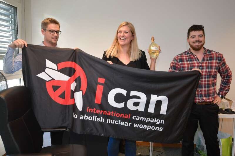 חברי הארגון לפירוז עולמי מנשק גרעיני לאחר הכרזת זכייתם בפרס הנובל לשלום לשנת 2017 // צילום: אי.אף.פי