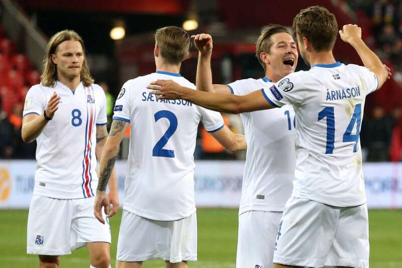 שחקני איסלנד חוגגים. בדרך להיות המדינה הקטנה ביותר שתשתתף במונדיאל // צילום: איי.אף.פי