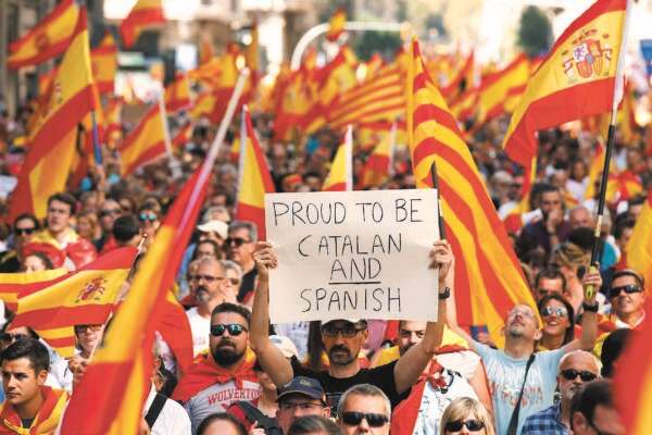 ההפגנות נמשכו גם אתמול, כאשר רבבות ספרדים, ויש האומרים יותר ממיליון איש, הגיעו מרחבי ספרד אל ברצלונה, קיימו הפגנה בעד "שמירה על איחוד ספרד". ההפגנה ההמונית חסמה את רחובותיה המרכזיים של עיר הבירה הקטלאנית, ומשתתפיה הניפו אל על את דגלי ספרד ודגלי קטלוניה. יש שתיארו את המצב בהפגנה כאופוריה. קריאות "ויוה ספרד" ו"ויוה קטלוניה" נשמעו בפיהם, כמו גם "אתם לא לבד" - כשהכוונה למשטרת ספרד ששוטריה נשלחו לקטאלוניה בעת קיום משאל העם ונתקלו בהתנגדות עזה ואלימה, בחלק מהמקרים על ידי האזרחים שתומכים בעצמאות החבל.