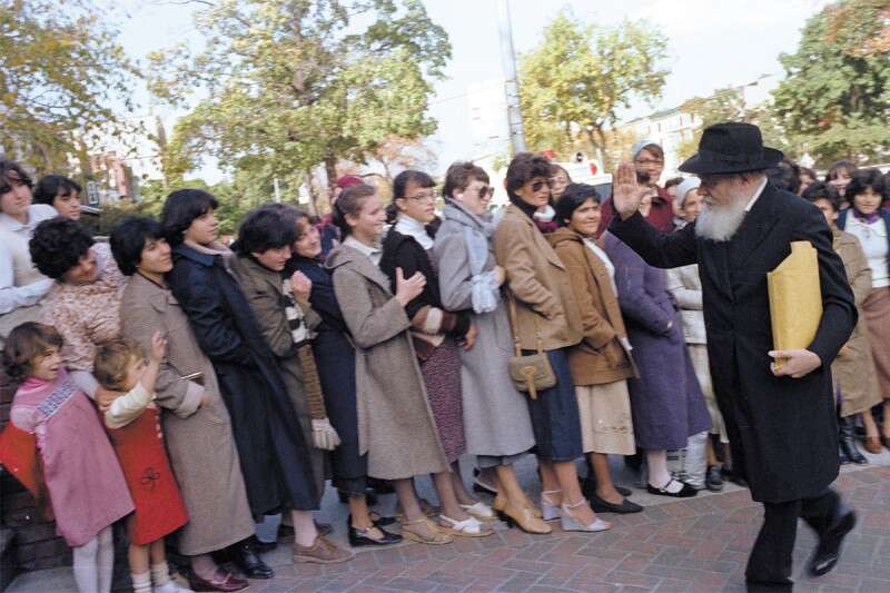 הרבי מלובביץ' עם נשות חב"ד. דאג להעניק יחס שווה ומקבל לנשים בחסידות // צילום: JEM/The Living Archive