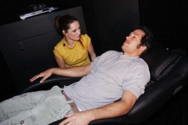 בשלב מסוים רצתה ונסה להיכנס למתקן סגור שהוצב במקום כדי לצפות בסרטון על המוצר תוך כדי ישיבה מענגת על כורסה רוטטת. ליוני זה נראה דווקא מבהיל והוא ניסה להסביר לה שיש לו קלאוסטרופוביה, אבל אותה זה לא עניין והיא משכה אותו פנימה בכל הכוח והשכיבה אותו על הכורסה.