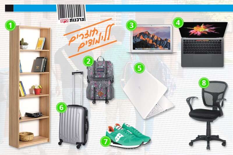 1. אייס 99.9, 2. ג'אנספורט, 356 ש', 3. מקבוק אייר, 7,999 ש' ברשת אייסטור, 4. מק עם טאצ' בר 13 אינץ', החל מ־7,479 ש' ברשת אייסטור, 5. אסוס, 1,399 ש' במחסני חשמל 7. סאקוני אוריג'ינלס, 329 ש', 8. 199.9, אייס,