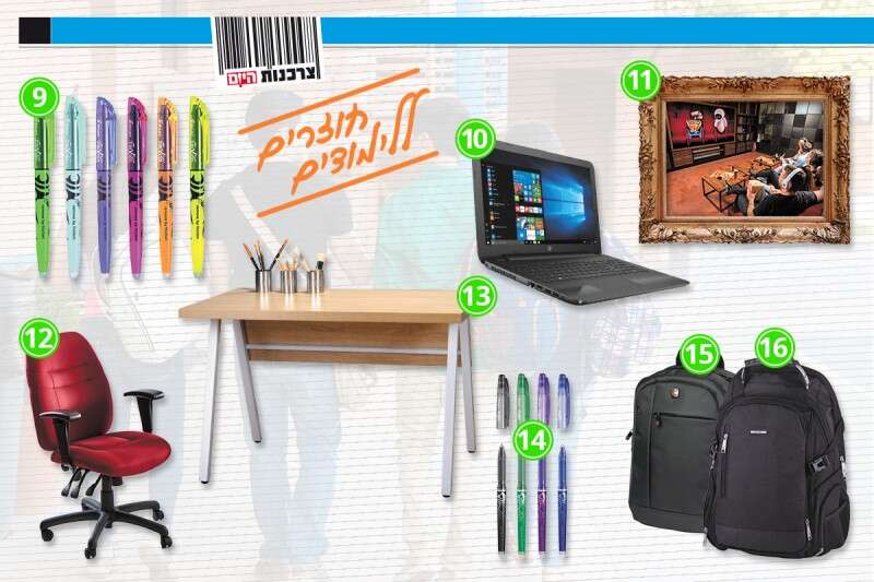 9. רשת מכלול, 5.30 לעט, 10. hp, 2,299 ש' בגרופון 12. הום סנטר, 499.90 ש', 13. 249.9, אייס, 14. רשת מכלול, 11 ש', 15. אסוס, 1,399 ש' במחסני חשמל, 16. תיק התיקים, 127 ש'