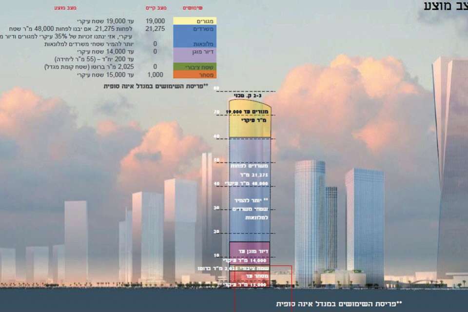 המגדל החדש יתנשא לגובה 90 קומות, ויהיה המגדל השני בגובהו בארץ. כ־40 קומות במגדל החדש יוקצו לתעסוקה, וכן יוקמו בו גם כ־200 יחידות של דיור מוגן - 60 דירות קטנות (עד 65 מ"ר) ו־240 יחידות דיור של כ־100 מ' ממוצע לדירה.