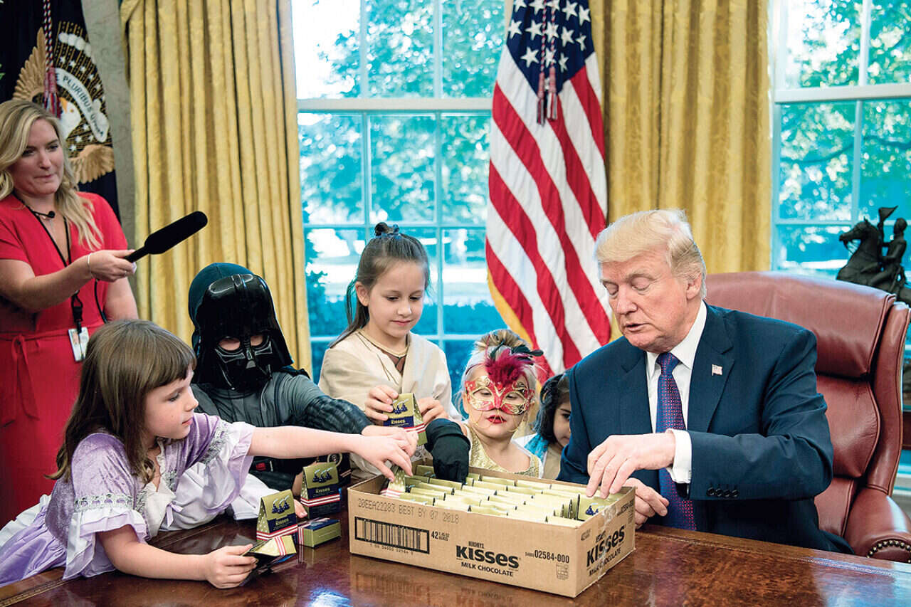 מה שעלול לייצר מתח בקרב הנשיא טראמפ לא ניכר על פניו בסוף השבוע. לקראת "ליל כל הקדושים", חילק שלשום טראמפ ממתקים לילדים כמיטב המסורת. כשהוא מוקף בילדיהם של כתבי הבית הלבן בחדר הסגלגל, החמיא להם הנשיא על התחפושות שלהם, והתלוצץ: "אני לא מאמין שהתקשורת הצליחה לייצר ילדים כל כך מקסימים. לא ייאמן". את ההורים, העיתונאים, עקץ: "עשיתם עבודה טובה, למרות שלא עשיתם עבודה טובה בכל הנוגע אלי".