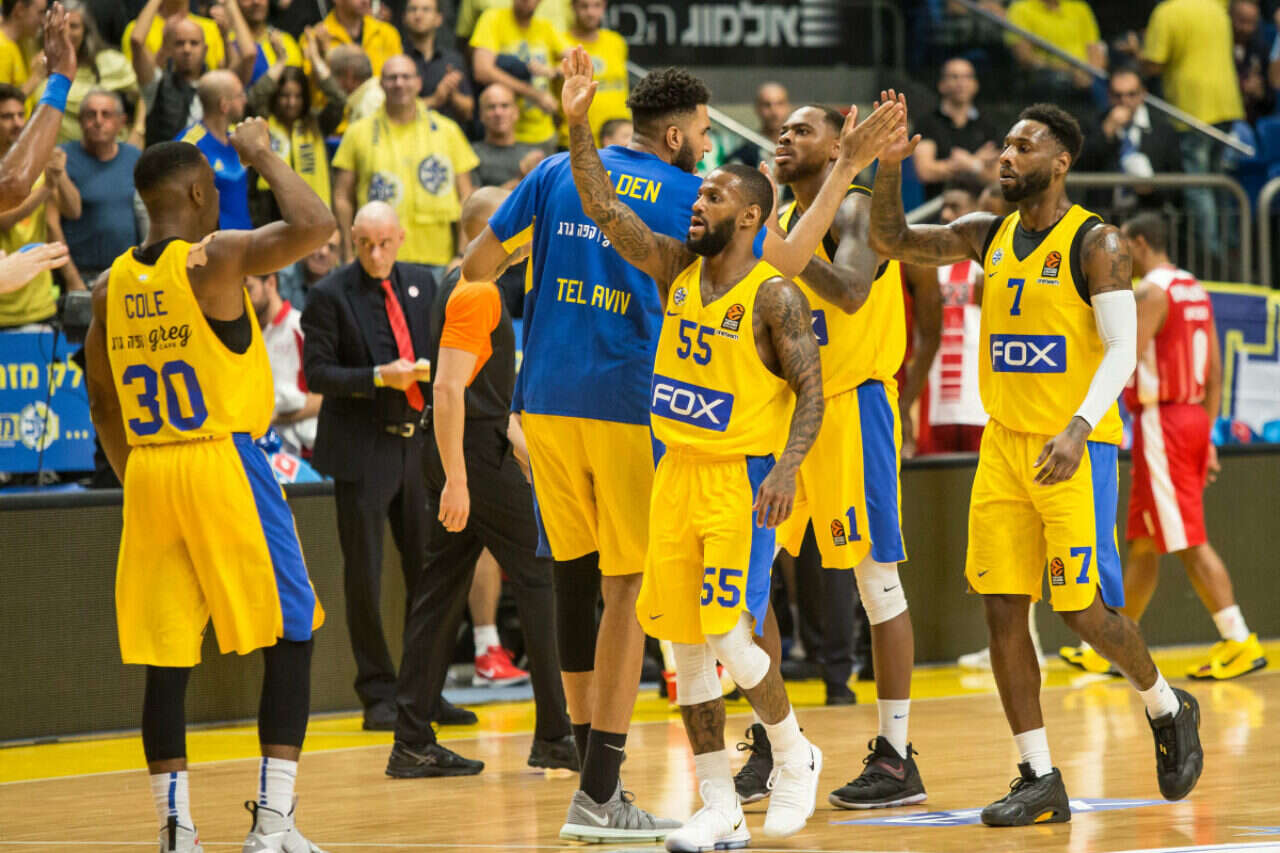 כארם משעור נשאר מחוץ לסגל, אבל במכבי ראינו חידושים. יובל זוסמן עלה כבר ברבע הראשון (קיבל 10 דקות רצוף) ואיתי שגב שותף לראשונה ביורוליג. הפתיחה היתה שקולה, כשמכבי סופגת את כל הנקודות בצבע, אבל לקראת סוף הרבע הראשון הדבר השתנה בזכות שחקני הגל השני. לא בפעם הראשונה השחקנים שעולים מהספסל משנים את המשחק: נוריס קול, דשון תומאס, דיאנדרה קיין ובמיוחד אלכס טיוס. המתאזרח של מכבי סיים את המחצית עם 10 נקודות ותשעה ריבאונדים בדרך ל־15 במשחק כולו, שמונה מהם בהתקפה.