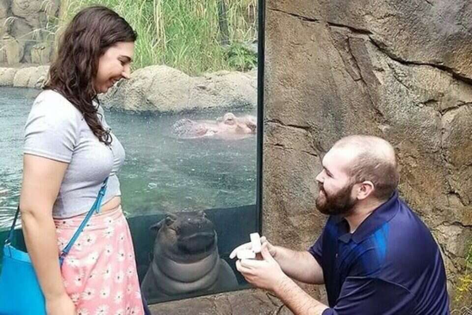 ניק קבל רצה להפתיע את זוגתו היילי רול בהצעת נישואין מרגשת, ובחר בגן חיות בסינסינטי כמיקום מפתיע - ואילו אז, השניים זכו להפתעה מתוקה עוד יותר, בזכות היפופוטמית חמודה בשם פיונה.