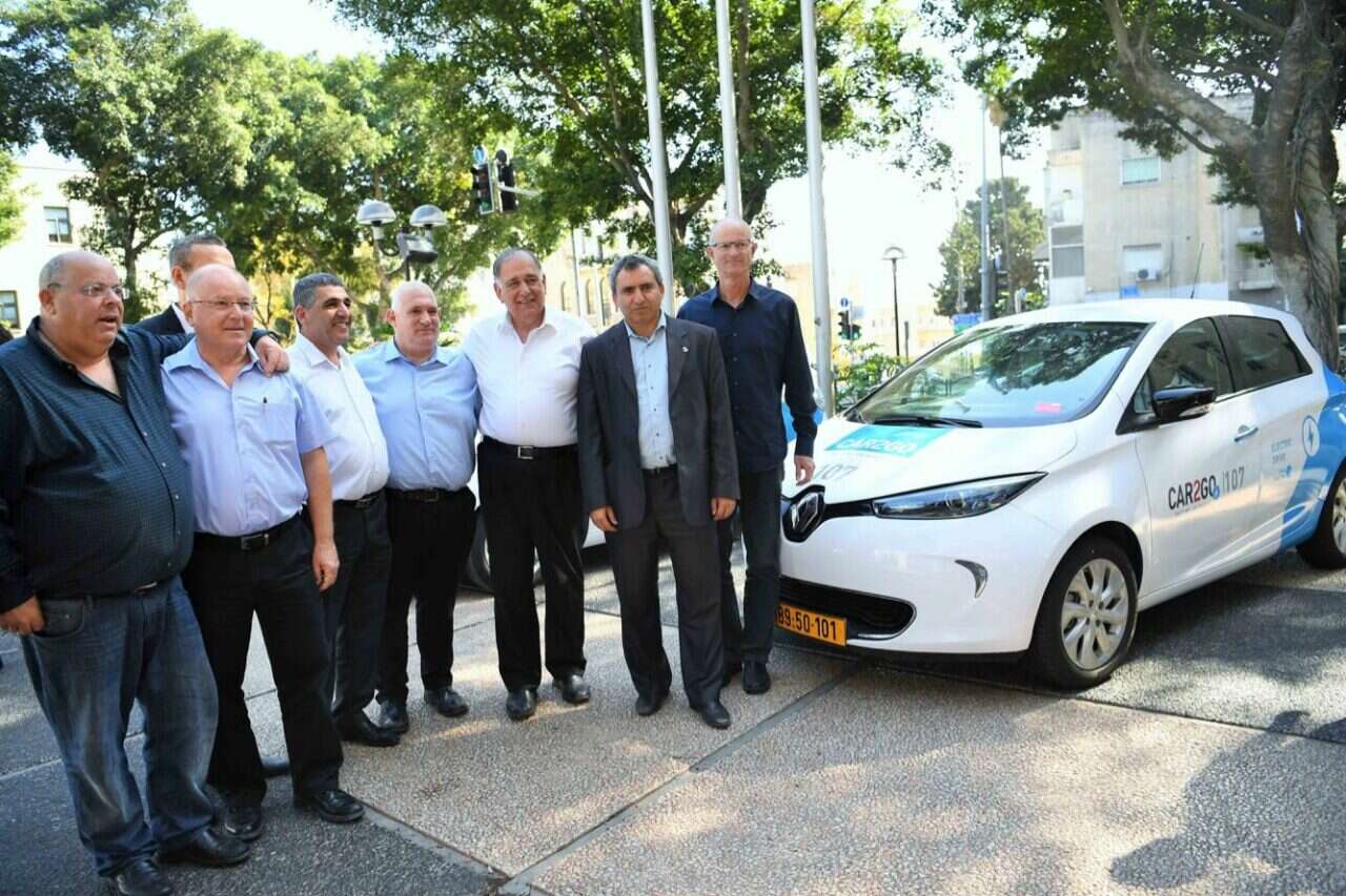 השר להגנת הסביבה ח"כ זאב אלקין, יו"ר קק"ל דני עטר, ראש עיריית חיפה יונה יהב, סגן השר להגנת הסביבה ח"כ ירון מזוז, גיל לייזר מנכ"ל חברת CAR2GO השיקו היום (שלישי) את פרוייקט הרכב החשמלי השיתופי בחיפה.