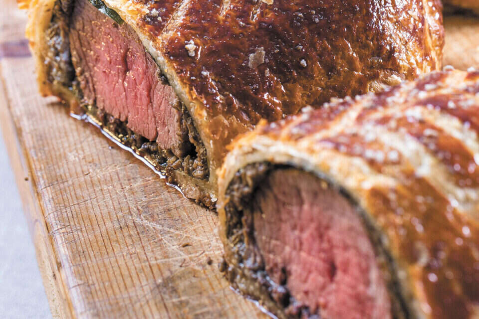 צילום: איתיאל ציון // נתח פילה בנוסח וולינגטון. פילה עם תרד ודוקסל פטריות מגולגל בבצק עלים
