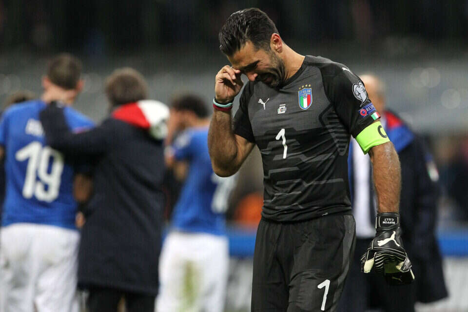 הכדורגל האיטלקי התעורר היום (ג') לבוקר שחור, לפחות ספורטיבית, לאחר ה-0:0 אתמול של הנבחרת מול שבדיה, שהותיר את האזורי מחוץ לגביע העולמי לראשונה זה 60 שנה, אז שוחק המונדיאל, כך רצה הגורל, בשבדיה. הכישלון הפך לעצוב עוד יותר לאחר פרישתם מהמדים הלאומיים של השוער ג'יג'י בופון, אליו הצטרפו דניאלה דה רוסי, ג'ורג'יו קייליני ואנדראה ברצ'אלי.