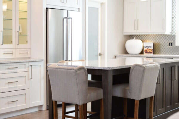 יחידות מיוחדות כדי למקסם מקום ומאמצי ארגון. הם כוללים ארונות פינתיים, כיור חזיתות כיריים, מתלים לבקבוק. התוספות הללו יוצרים מרחב עבודה שמיש בין משטחי העבודה והקצה התחתון של הארונות העליונים. המטבח החם הפתוח מושך את הצבעים העשירים מן הנוף שמסביב, כגון הארון החום-אפור.