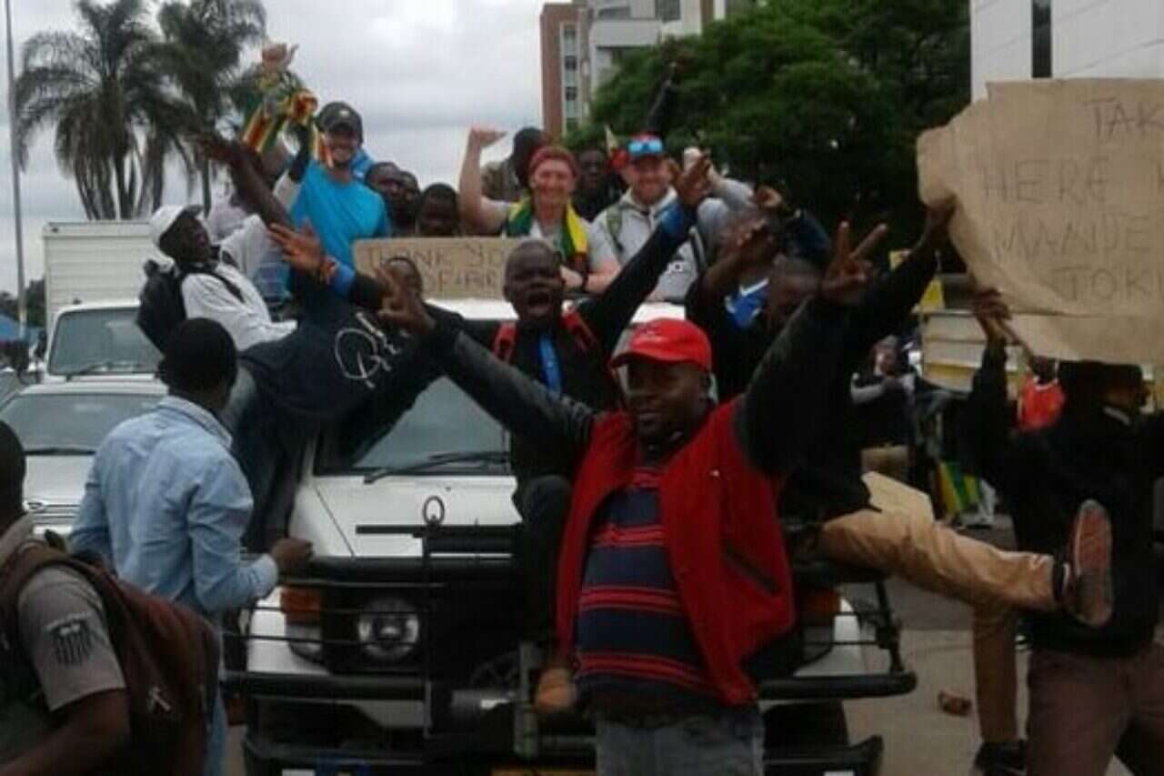 עשרות אלפי אזרחים יצאו לרחובות בירת זימבבואה הררה עם היוודע החלטתה של מפלגת השלטון, מפלגת החזית הפטריוטית, להדיח מתפקיד הנשיאו תאת רוברט מוגאבה, האיש ששלט במדינה במשך 37 שנים.