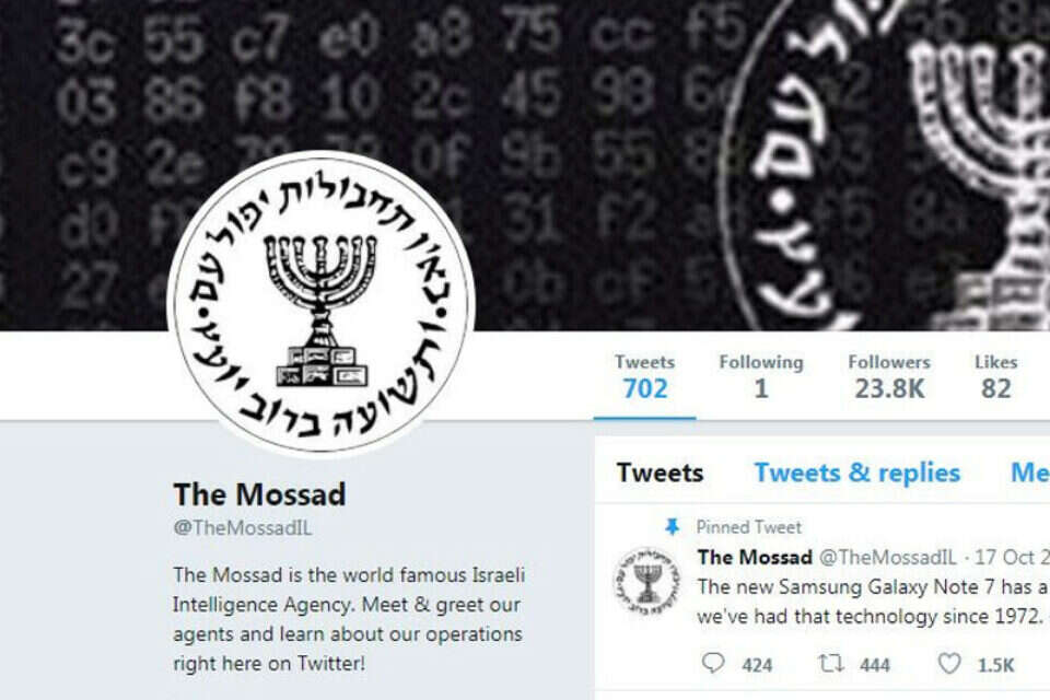 סמלו של ה"מוסד למודיעין ולתפקידים מיוחדים", ארגון הביון היוקרתי של ישראל מעטר חשבון ברשת החברתית טוויטר. תחת השם "המוסד" וההאשטאג @theMossadIL נכתב כי "המוסד הוא ארגון הביון המפורסם של ישראל". החשבון נפתח בשנת 2016, המיקום שאותו הוא מציין שממנו הוא פועל הוא ישראל והציוצים בו כתובים בשפה האנגלית בלבד.