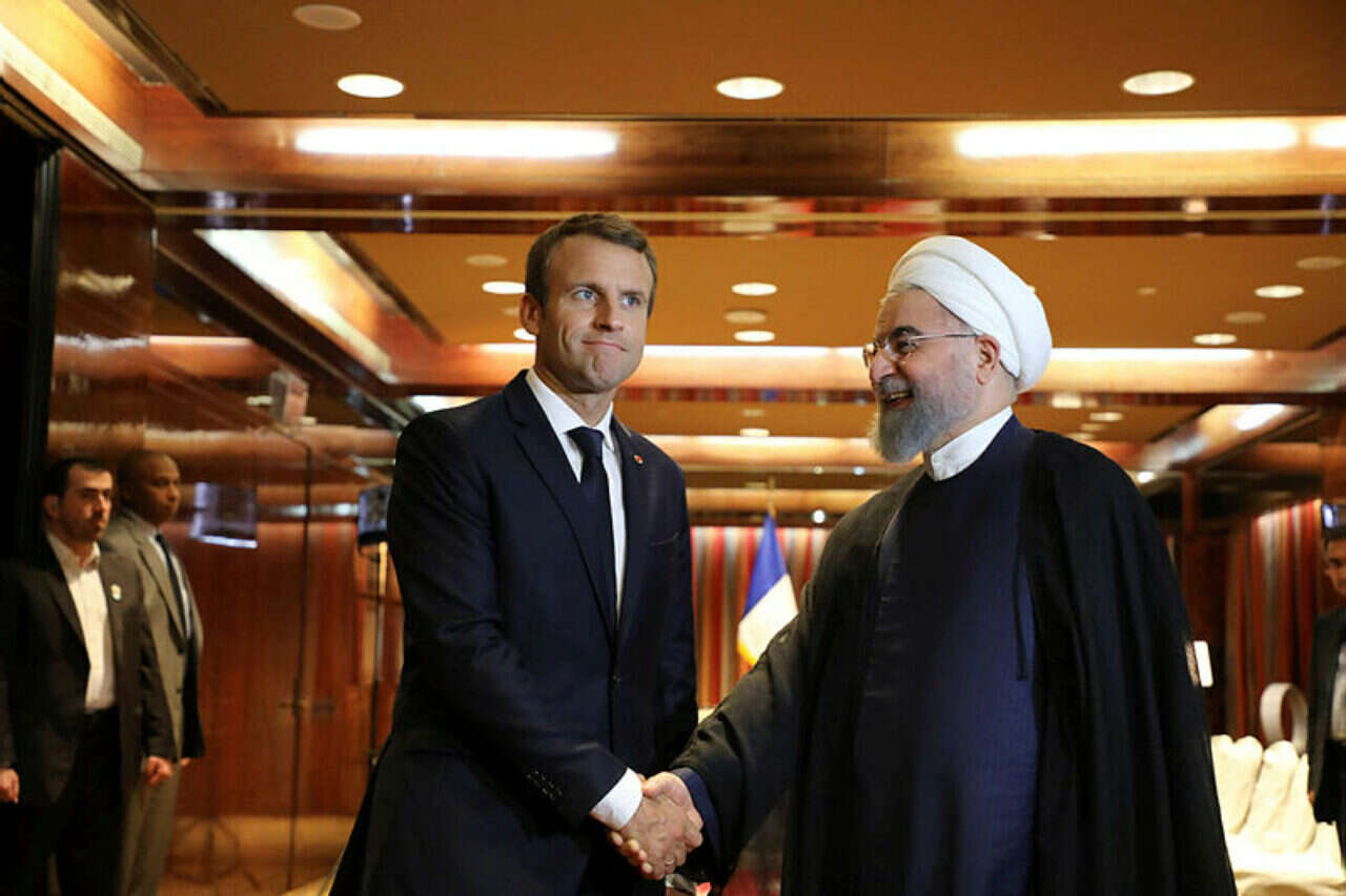 מקרון ורוחאני בעצרת האו"ם בניו יורק // צילום: אי.אף.פי