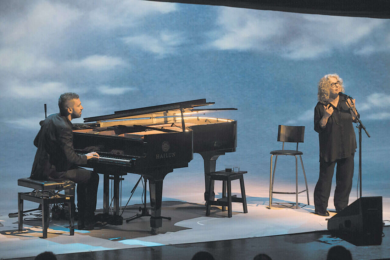 במופע עם שלומי שבן, חוה אלברשטיין מוכיחה סופית שהיא רוקרית בנשמה, עם מיקרופון ביד ופסנתרן חלומי
