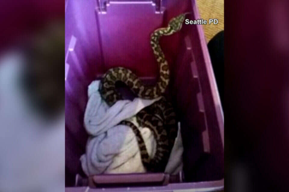 תגלית מחרידה: משפחה בעיר סיאטל בארצות הברית גילתה ביום שישי האחרון כי היא חולקת את חדר השירותים שלה עם שותף לא סימפטי במיוחד, נחש פיתון באורך 2 מטרים.