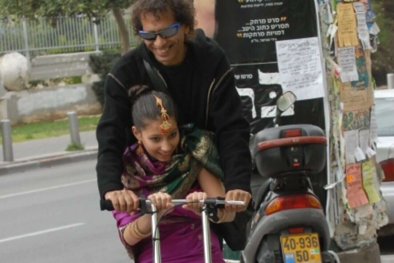 יזהר חשמלי. יזהר כהן לקח את בתו המחופשת להודית לחנות Treker לעשות נסיעת מבחן על קורקינט חשמלי.