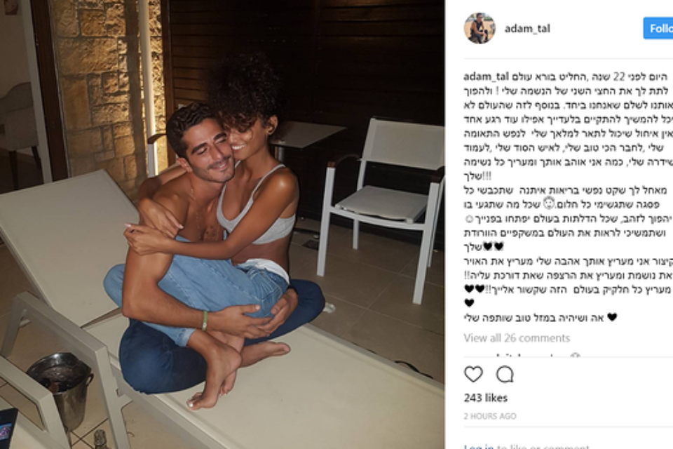 "היום לפני 22 שנה החליט בורא עולם לתת לי את החצי השני של הנשמה שלי, ולהפוך אותנו לשלם שאנחנו ביחד. בנוסף לזה שהעולם לא יכול היה להמשיך להתקיים בלעדייך אפילו עוד רגע אחד. מלאך שלי, נפש תאומה שלי, החבר הכי טוב שלי, איש הסוד שלי, עמוד שידרה שלי - כמה אני אוהב אותך ומעריך כל נשימה שלך!", כך כתב אמש (חמישי) בן זוגה של פליטת "האח הגדול" עדן סבן, אדם טל, בפוסט מרגש בחשבון האינסטגרם לרגל יום הולדתה של בת זוגו.