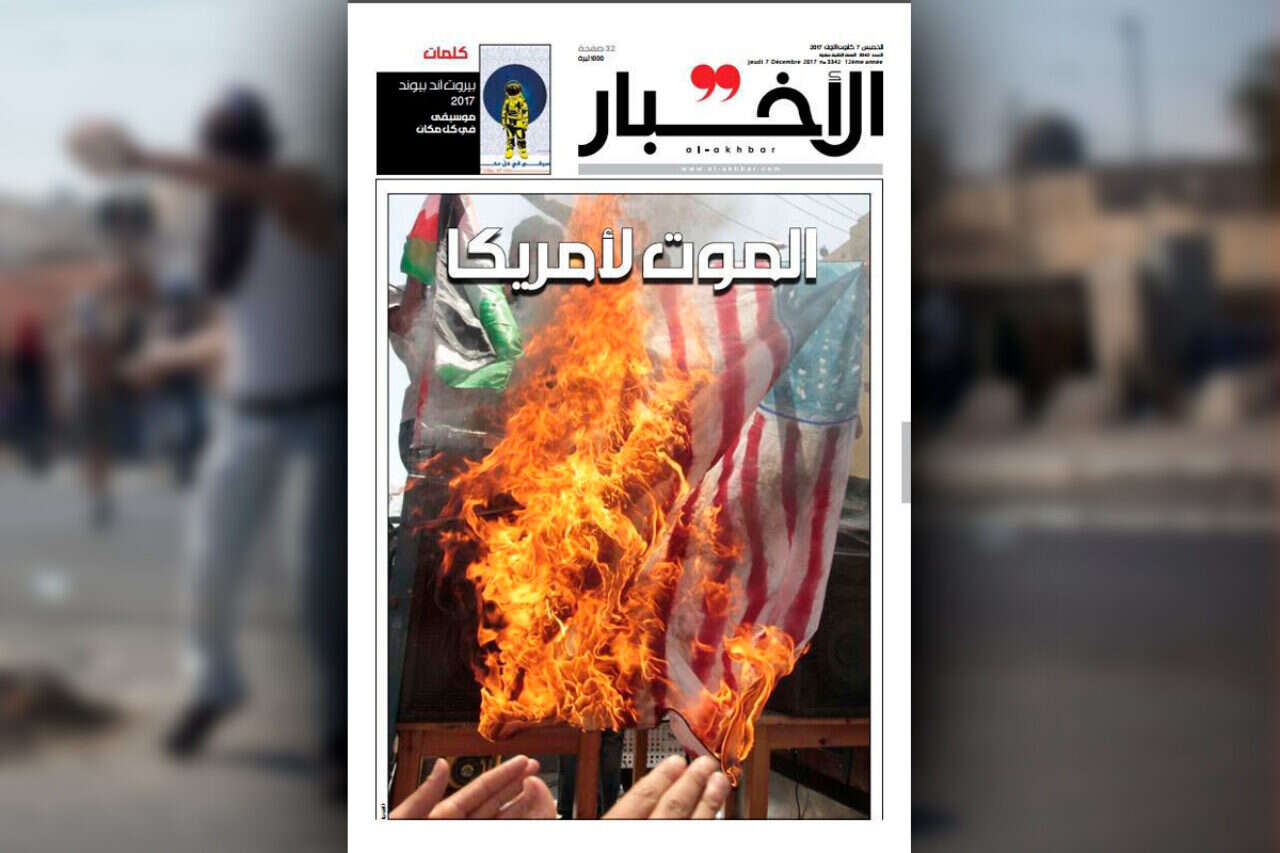 בעולם הערבי הביעו אתמול והבוקר זעם כבד על ההכרה האמריקנית בירושלים כבירת ישראל. נשיא טורקיה ארדואן טען כי משמעות ההחלטה היא "לזרוק את האזור לתוך טבעת אש" והמליציה המיליטנטית בעיראק מסרה כי ההחלטה נותנת גופשנקה לתקוף כוחות אמריקאים. במרבית כלי התקשורת הערבים נמתחה ביקורת חריפה על ההחלטה להכיר בירושלים. הגדיל לעשות העיתון הלבנוני אל אח׳בר המזוהה עם חיזבאללה כאשר בכותרת הראשית בשער העיתון הבוקר נכתב "מוות לאמריקה".