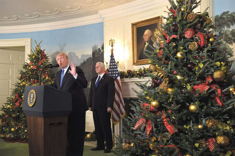 עשה את המעשה המתבקש. טראמפ במהלך ההצהרה // צילום: אי.אף.פי // עשה את המעשה המתבקש. טראמפ במהלך ההצהרה