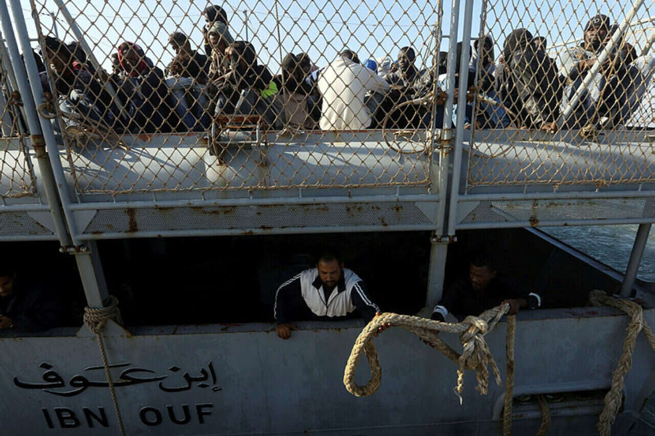 מהגרים שניסו להימלט מאפריקה על סירת משמר החופים הלובי // צילום: אי.אף.פי