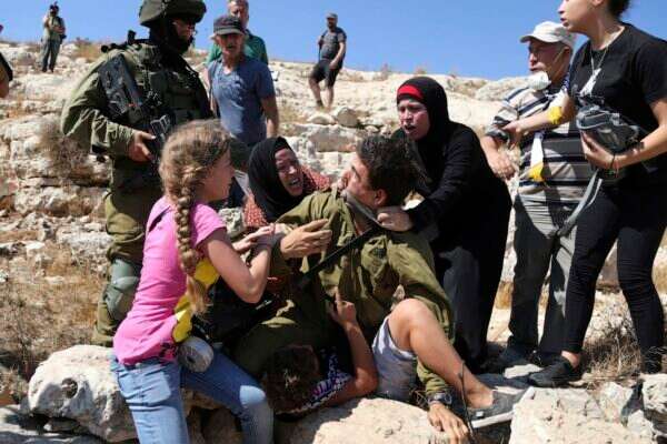 בנות משפחת תמימי מעוררות פרובוקציה מול חיילי צהל בכפר נבי סלאח // צילום מתוך חדשות 2