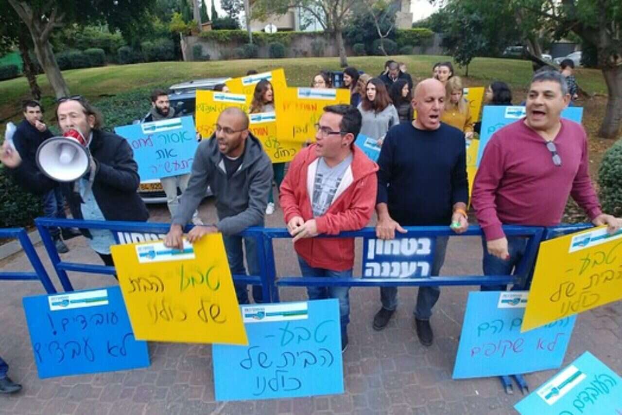 ההפגנה מול ביתו של פרס // צילום: יהושע יוסף