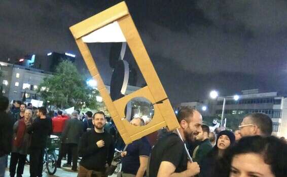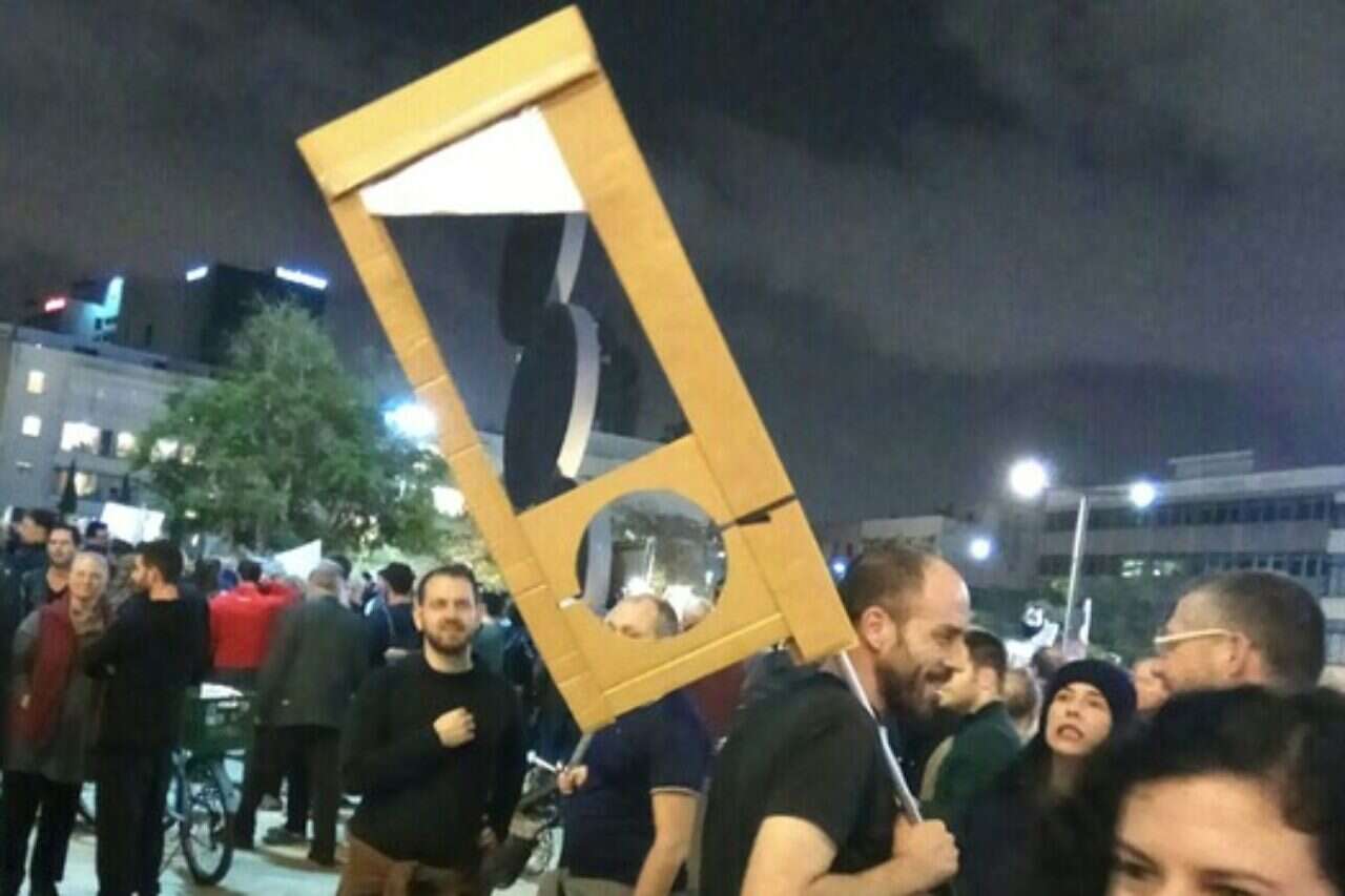 הגיליוטינה שהונפה בהפגנת השמאל בתל אביב // צילום: ישי פרידמן