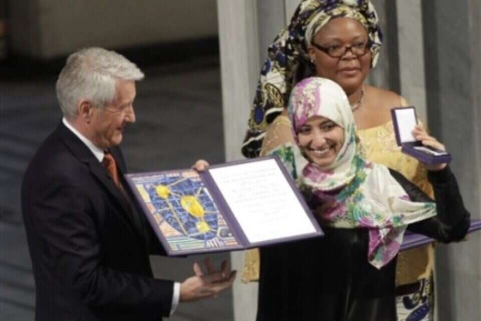 OSLO, Norway Nobel Peace Prize winner Tawakkul Karman says she believes the pro-democracy revolts that have swept the Arab world will help "drive out" al-Qaida terrorists. Karman told The Associated Press on the eve of Saturday's award ceremony that the autocratic leaders that were toppled from Tunisia to her native Yemen created an environment where extremism could grow. "When there is dictatorship, you will find extremism and you will find terrorism," said Karman, a female icon of the protest movement in Yemen. "I am so confident that these peaceful revolutions and new governments in the Arab region and the rest of the world will drive out terrorism." A 32-year-old journalist and member of the Islamic party Islah, Karman is the first Arab woman to win the Nobel Peace Prize. She shared it with Liberian President Ellen Johnson Sirleaf and women's rights campaigner Leymah Gbowee. The peace prize committee recognized the three women for championing women's rights in regions where oppression is common and helping women participate in peace-building. Karman, who also heads the human rights group Women Journalists without Chains, said she is not worried that conservative Islamist parties would roll back women's rights, and she expects women in Yemen to hold top political offices, including that of president, "in the near future." Islamist parties dominated the first round of Egypt's first parliamentary elections following the ouster of President Hosni Mubarak. Only four women won among 150 of 498 seats determined. Islamic parties also scored election victories in Tunisia and Morocco. "I am not afraid of the future. If we did we would not make this revolution," Karman said. "We should not marginalize anyone. Participation in the political life is the only way that will drive extremism (away), so I am not afraid." At a joint news conference earlier Friday, the three peace laureates said they felt the award had empowered their struggle for women's rights, democracy and peace in their home countries and beyond. "No longer will the world exclude us," said Gbowee, 39, who long campaigned for the rights of women, against rape and challenging Liberia's war lords. Karman drew applause when she proclaimed that the period in which women appeared as victims has ended. "They are leaders," she said. "Not just leaders in their countries, or leaders in their struggles. They are leaders in the world." She said she hoped the uprising against outgoing President Ali Abdullah Saleh had changed Yemen's reputation as a hotbed of terrorists. Sirleaf, Africa's first democratically elected female president, is widely credited with helping Liberia emerge from an especially brutal civil war. She dedicated the Nobel to the women who have suffered in conflicts in Africa. "They have carried the burden of those conflicts, subjected to rape, to sex slavery, being the ones who have to continue to have to provide for their children even as their men are out in war," she said. Sirleaf was elected president in 2005 and won re-election in October. No woman or sub-Saharan African had won the prize since 2004, when the committee honored Wangari Maathai of Kenya, who mobilized poor women to fight deforestation by planting trees. By selecting Karman the prize committee also recognized the Arab Spring movement championed by often anonymous activists from Tunisia to Syria. Last year's peace prize went to imprisoned Chinese dissident Liu Xiaobo, who was represented by an empty chair at the awards ceremony as an infuriated China would not allow him to travel to Norway. The three women will share the 10 million kronor ($1.5 million) award, which was presented Saturday at Oslo's City Hall.