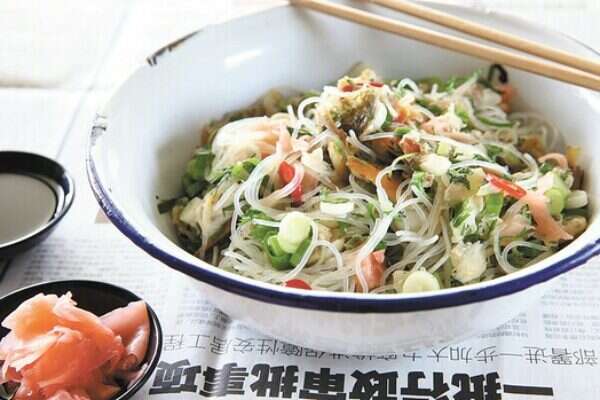 סלט איטריות זכוכית, דג קריספי וג'ינג'ר כבוש