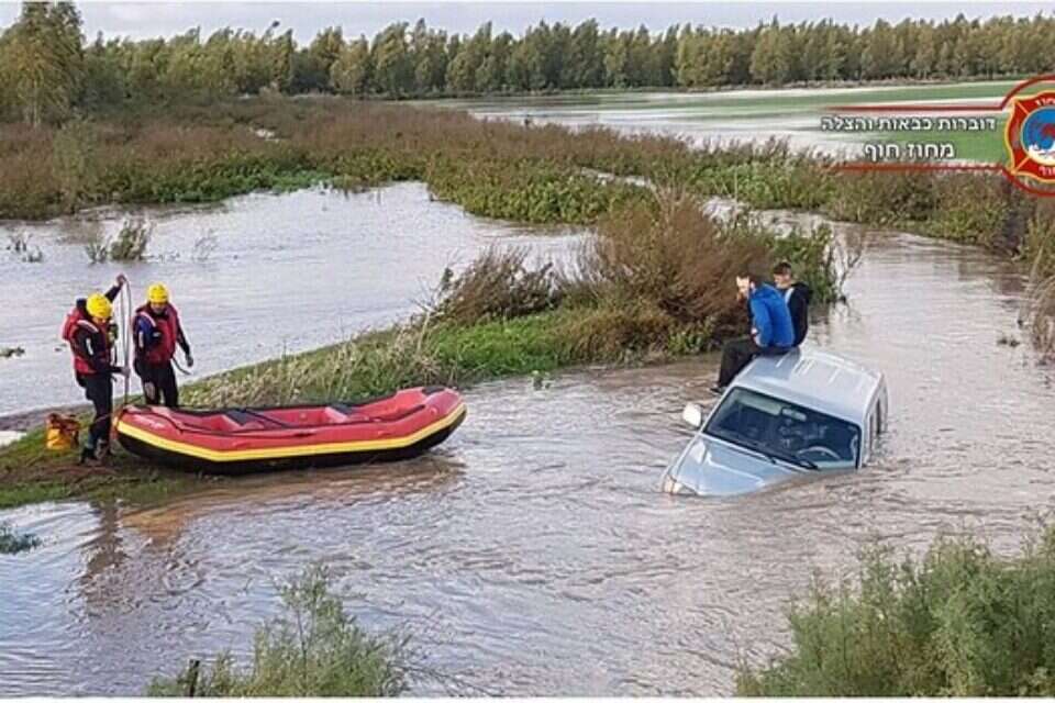 סוף השבוע הסוער בישראל ממשיך לגרום לנזקים: חברי יחידת החילוץ של כבאות חדרה חילצו אחר הצהריים (שישי) שני אזרחים ששקעו עם רכב השטח שלהם ונאלצו לטפס על גגו. לוחמי האש חברו אליהם באמצעות סירת חילוץ וחילצו אותם בשלום. בסביבת האירוע התקבצו מספר בעלי רכבי שטח נוספים, אך חברי יחידת החילוץ הוזהרו לבל ינסו בכל זאת להכנס לערוץ.