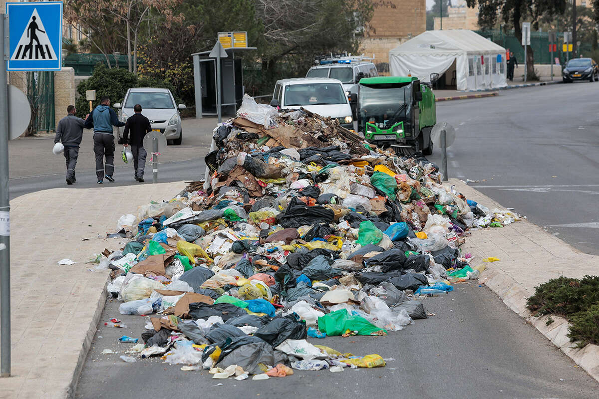 בשבוע שעבר הפגינו עובדי עיריית ירושלים ופרקו ערימות של אשפה ממשאיות סמוך למשרד האוצר.