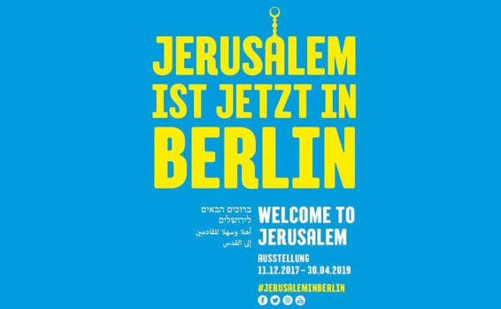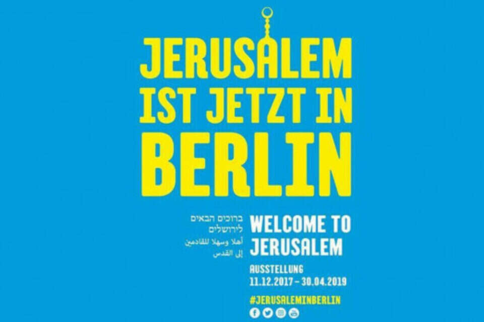 סמל האסלאם - יש, סממנים יהודים - אין. כרזת פרסומת לתערוכה "ברוכים הבאים לירושלים" במוזיאון היהודי בברלין