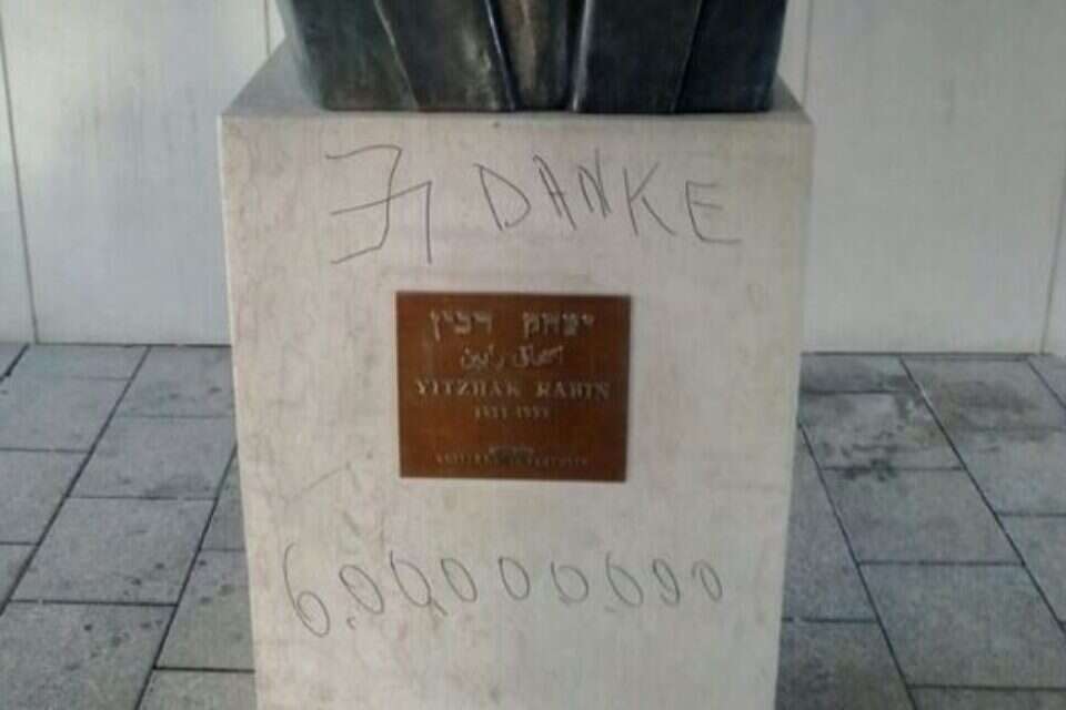 כתובת נאצה על פסלו של רבין: "תודה, שישה מליון"