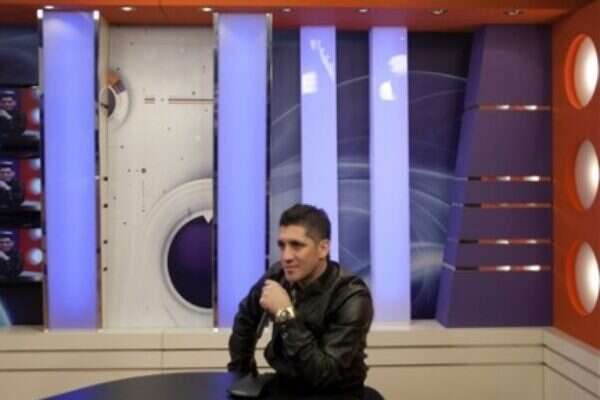 צילום: AP // Israeli-Arab singer Sharif poses for a picture at a TV studio in Haifa. Sharif said he was forced to cancel a show on New Year's Eve in the West Bank because of threats from activists opposed to coexistence with Israel.