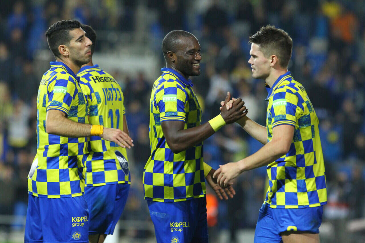 וידאר קיארטנסון חוגג עם צמד מול נתניה, אתמול. התקרבו למקום הראשון // צילום: עמי שומן