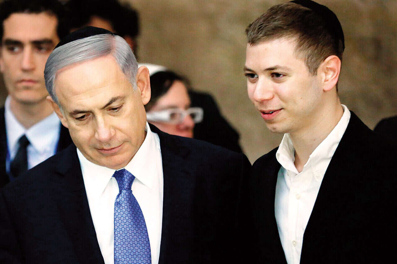 יאיר ובינמין נתניהו. המחאה הגיעה גם לדשא, צילום: איי.אף.פי