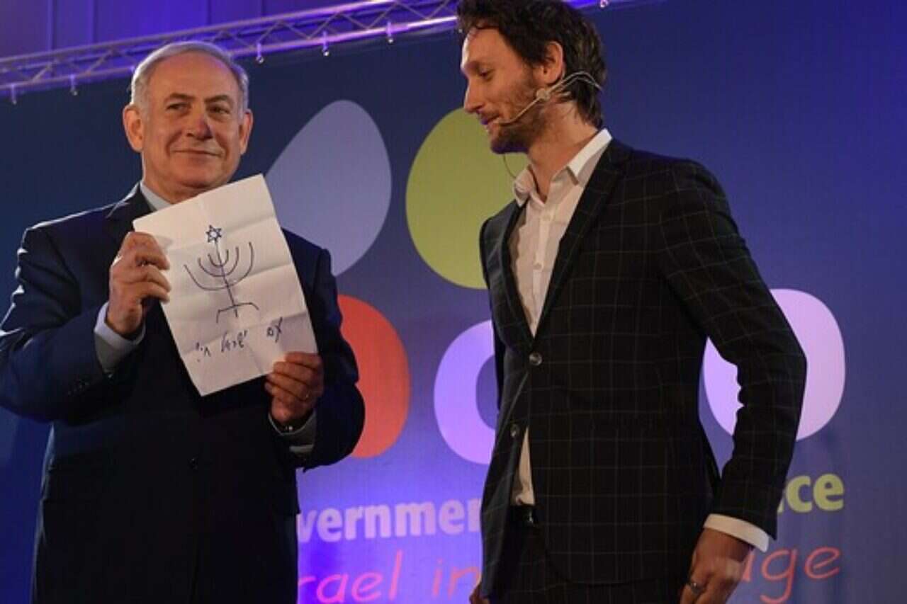 נתניהו הניף מול הקהל את הדף שעליו צייר מנורת שבעת קנים עם הכיתוב בעברית: "עם ישראל חי". סושרד הנבוך הביט בציור והודה: "אני אפילו לא הייתי קרוב".