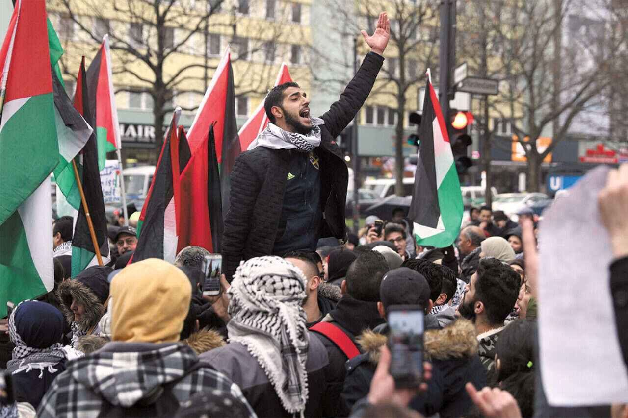 הפגנה בגרמניה נגד ההכרה של הנשיא טראמפ בירושלים כבירת ישראל // צילום: רויטרס // הפגנה בגרמניה נגד ההכרה של הנשיא טראמפ בירושלים כבירת ישראל