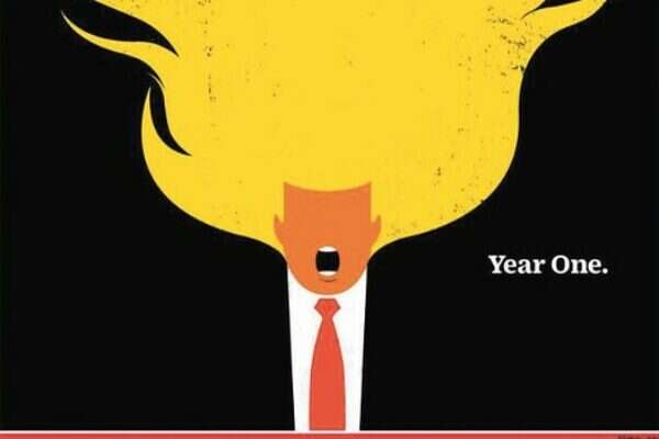מדובר באיור של טראמפ צועק, בשעה ששערו מתלקח והופך ללהבה. לצד האיור נכתב: "השנה הראשונה". אדל רודריגז, שאחראי לשער, אמר ששאב השראה מ"אש וזעם", הספר השערורייתי המתאר את המתרחש בבית הלבן.