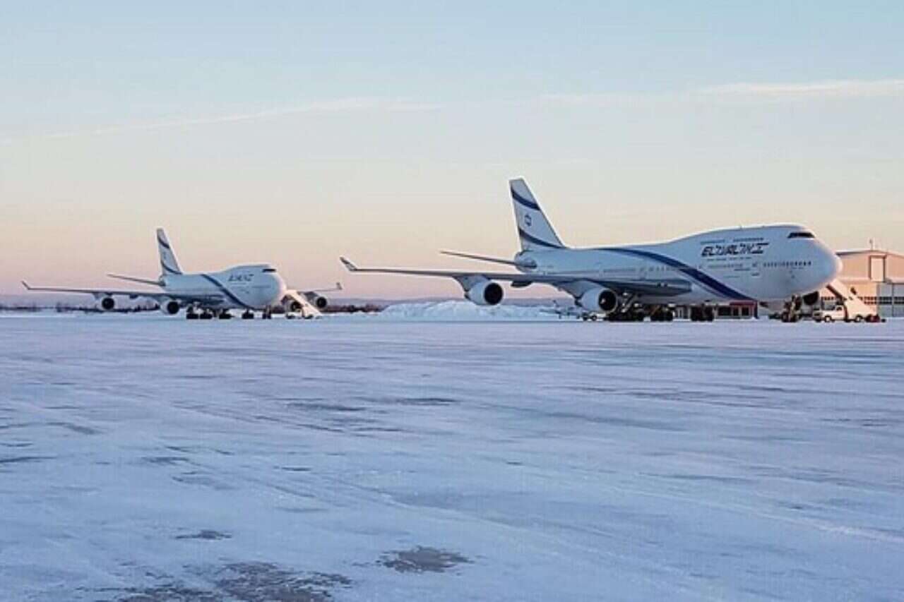 מטוס החילוץ לפני הנחיתה על הקרח בקנדה // צילום: מאיר מסיל, אל על
