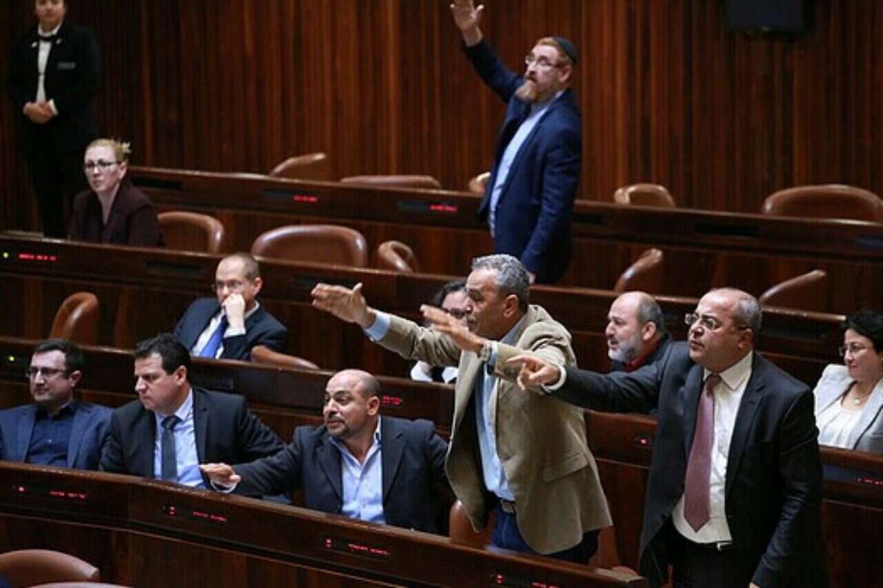 "ירושלים היא בירת פלשתין" - הכרזה שהניפו הח"כים הערבים בתחילת נאומו של פנס: