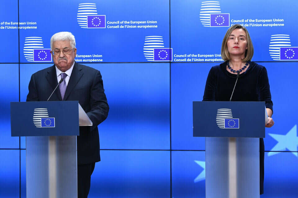 עבאס, שנועד לפגישה בליטרלית עם מוגריני ואחר כך לפגישה בלתי פורמאלית עם נציגי 28 המדינותל החברות באיחוד, קרא למדינות האיחודלהכיר במדינת פלסטין. "הכרה כזו לא תהיה מכשול בפני השגת שלום", טען עבאס, שהוסיף כי מספרם של הפלסטינים כיום הוא 13 מליון – 6 מיליון מהם פליטים.
