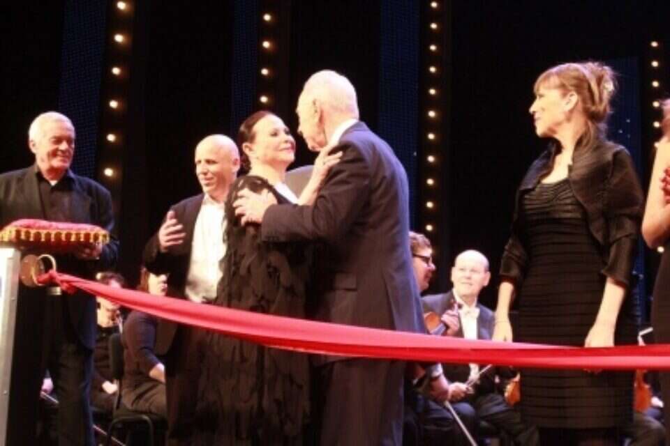 Habima, the national theater of Israel, officially reopened its doors Sunday night, five years after stage performances were relocated for renovations and two months after the curtain of the first play was raised in the newly-renovated facility. The celebratory ceremony, held in the facility's sparkling new Rovina hall, was attended by President Shimon Peres, Culture and Sport Minister Limor Livnat as well as a long list of artists, politicians and culture aficionados. The celebration was dampened -- literally -- by heavy rains in Tel Aviv, and despite the extensive investment in renovations, water dripped a bit onto the stage before the ceremony. Rovina Hall is named after the famous actress Hana Rovina, who starred in Habima's historical production of S. Ansky's "The Dybbuk," performed not in Yiddish, but in the Hebrew-language translation by the great Hebrew poet Hayim Nahman Bialik. Both the actress and the reproduction of her play in Hebrew have served as cultural icons for fans of both Jewish and Israeli theater. Sunday's ceremony opened with host Alex Ansky, an actor, journalist and radio broadcaster, playing a recording of the original inauguration ceremony for Habima in 1945. Immediately after, the Israel Philharmonic Orchestra played Beethoven's "Consecration of the House," the same piece played at the original opening. "Habima has served as a stage for the great dramatic story that is the state of Israel," Peres said at the ribbon-cutting ceremony. "Habima returns to its renovated home, a home for an ever-expanding Israeli society." Following the ribbon-cutting ceremony, a number of notables took to the podium to speak and present, including director Odelia Friedman, Tel Aviv Mayor Ron Huldai, and Livnat. A number of great theater actors also took to the stage, including Gila Almagor, Moni Moshonov, Avi Kushner, Yevgeniya Dodina, Lea Koenig and Jacob Cohen, to perform a variety of songs and scenes. Audience members were also treated to a screening of a film about the building's history. Following Koenig's performance of a song from the play "Mother Courage," Livnat surprised the actress with a certificate of honor, commemorating 50 years of stage appearances. "Thank you, Lea, for the dozens of roles you have given us and the many more to come," Livnat said. "For your unfettered joy of life and your invincible humor." The ceremony culminated in all of the actors and employees coming together on the stage. As far back as the last row of the auditorium, the excitement could be felt. Despite the celebration inside, outside the theater's doors on the vast public square and garden of Habima's campus, dozens of activists demonstrated against Huldai's policies. Three demonstrators were arrested. In response to the demonstration, Huldai said, "The stage is a public institution and the art of the theater is affordable. So why protest? If you oppose me, then protest; but not outside of an event dedicating Habima Theater."