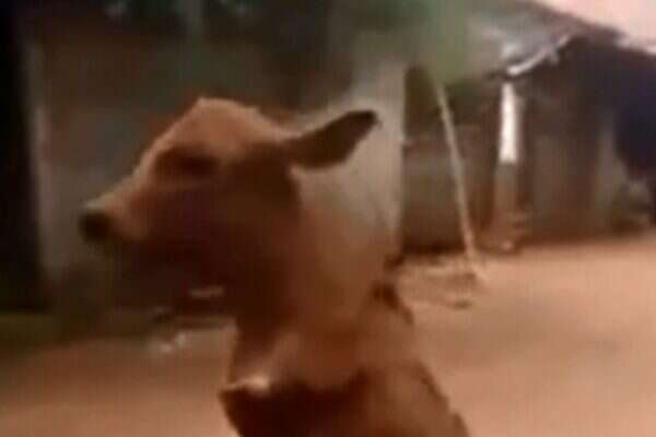 הסרטון המשונה הזו מגיע ככל הנראה מאינדונזיה, נראה בו עגל צעיר של פרה שנולד באופן טבעי עם מום משמעותי: העדרן של שתי רגליו הקדמיות.