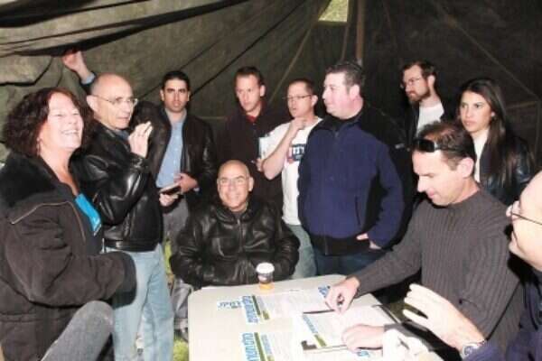 Former Mossad chief Meir Dagan visited the Tel Aviv Central Train Station on Friday to show his support for the IDF reservists camping there in protest of the currently debated extension to the Tal Law, which exempts ultra-Orthodox youth from serving in the military. The reservists pitched a tent called "The Camp of Suckers" in the Central Train Station parking lot on Thursday and have protested in the area since. Protesters are comprised of The Israeli Forum for the Promotion of Equal Share of the Burden, the Common Denominator, and the Wakeup social movement. The reservists voiced their discontent that while they have to serve in the IDF until they are in their 40s, the ultra-Orthodox youth do not serve at all and moreover receive government stipends. During his visit to the protest tent, the former Mossad chief signed the petition against the Tal Law. "Now that the fight is going to a vote in the Knesset, we need to mark every MK that supports changing the status quo, so that there will be an equal sharing of the burden. We must pressure everyone who supports the current law," Dagan said. National Infrastructure Minister MK Uzi Landau and MK Moshe Matalon of Yisrael Beitenu came to the protest on Friday as well and vowed that their party will vote against the law. "Their fight is crucial and is one that applies to all layers of society and promotes the simple idea that in Israel, everyone needs to take part in the collective burden," Landau said. Chairman of the Yad Labanim organization, Eli Ben Shem, arrived accompanied by bereaved parents of fallen soldiers, as did head of the IDF Widows and Orphans organization, Gil Simenhaus. National student union leader Itzik Shmuli came with Israeli songwriter Haim Hefer to show their support for the cause. Hefer called on the prime minister "to cancel the Tal Law immediately and replace it with a law calling for equal service for all. I remember the soldiers of convoy 35 [a platoon of Jewish fighters during Israel's War of Independence who died attempting to resupply the Gush Etzion Kibbutzim], who were all students of the Torah but put their books down to go fight and save Gush Etzion." "We plan to put immense pressure on all Zionist party MKs to form a bloc that will deny an extension to the Tal Law in the Knesset; we expect all MKs that respect the laws of equality in this country to refuse extending the law," activist leader Idan Miller said. Another prominent member of the protest group, Boaz Nol, said that the group has tens of thousands of signatures of people who are against the extension. The Cabinet's decision to pass the vote to the Knesset is seen as "winning a battle, but not the war." Prime Minister Benjamin Netanyahu, who had initially voiced his intention to extend the law, decided instead to avoid a coalition crisis on Friday and not put the extension of the controversial law to a vote by the coalition, which is deadlocked on the issue, but rather to enact a general Knesset vote. Netanyahu wants to extend the law by more than one year (Defense Minister Ehud Barak has said he wants the law extended by only one year), but fewer than five years (the maximum sought by the ultra-Orthodox party, Shas). Netanyahu has been trying to reach a compromise that would bridge the gaps between all coalition parties. The decision to cancel next Sunday's Cabinet vote on the issue essentially prevented a coalition crisis with Yisrael Beitenu, headed by Foreign Minister Avigdor Lieberman, which stridently opposes extending the law. The Tal Law was drafted to encourage young ultra-Orthodox men to enlist voluntarily, but it has patently failed to increase the amount of haredi men joining the army by any significant number. Barak has suggested extending the law, but only for one year, during which an adequate and more relevant alternative will be formulated. The defense minister said Thursday that he felt "this law has outlived its usefulness and does not provide a solution to the main problem it was established to address: an imbalance in the carrying of the burden." Barak added there should be 2,000-3,000 slots saved for "Torah prodigies" who will continue to study, but that the rest of the ultra-Orthodox youth would take part in serving and join the work force. Protesters staged a large protest outside the Prime Minister's Office in Jerusalem during the cabinet meeting on Sunday. Meanwhile hundreds of high school seniors throughout Israel organized events at their schools to show their support for the IDF reservists.