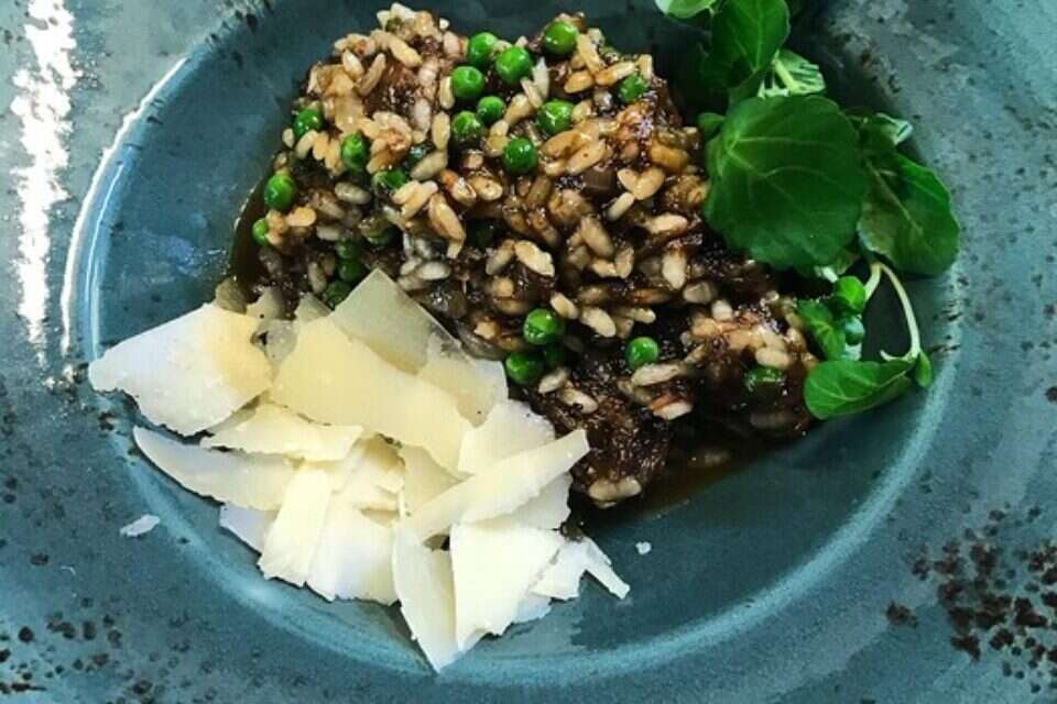 ריזוטו זנב שור- אורז בבישול ארוך מבושל עם בצל ויין לבן. בשר של זנב שור שבושל ביין אדום וירקות שורש פרמז'ן ואפונת גינה. 135 שקלים