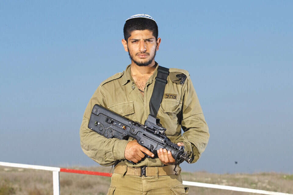 אנחנו נפגשים בבא"ח גולני ברגבים. את פניו מעטר זקן צה"לי תקני. על ראשו כיפה לבנה שמגן דוד גדול רקום עליה. עיניו השחורות מחייכות במבוכה קלה. "בדיוק היום אנחנו מסיימים את הטירונות, ויכול להיות שאצטרך לצאת לכמה דקות כדי לחתום על ציוד", הוא מתנצל.