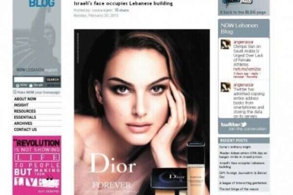 Beirut billboard for Dior cosmetics featuring Israeli-American actress Natalie Portman provokes ire of Lebanese citizens • Local bloggers say any dealings with Israel, even in the form of an ad, are illegal in Lebanon.