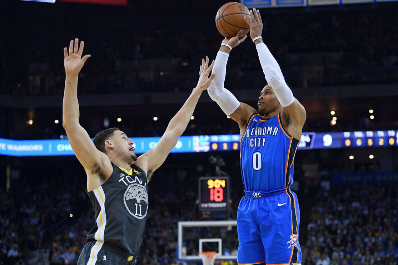 הת'אנדרס מסתמנים ככבשה השחורה של האלופה עם ניצחון שני העונה של ראסל ווסטברוק וחבריו על גולדן סטייט. האלופה נראתה רע מאוד מהפתיחה כשספגה 42 נקודות ברבע הראשון וירדה להפסקה בין הרבעים בפיגור 12. האורחת שחושבת על יתרון ביתיות בפלייאוף ורחוקה 2.5 משחקים ממינסוטה, שבמקום הרביעי המוביל לשם פשוט התעללה בגולדן סטייט גם בהמשך כשלמחצית ירדה ביתרון 57:70. לוויריורס שהיו בפיגור לאורך כל המשחק לא היה סיכוי לחזור, בוודאי כשהם מאבדים את דריימונד גרין ברבע הרביעי לאחר שספג עבירה טכנית שניה והורחק. היתרון של בילי דונובן ושחקניו רק המשיך לצמוח ובכך, שחקניו של סטיב קר נחלו את הפסדם ה-13 העונה.